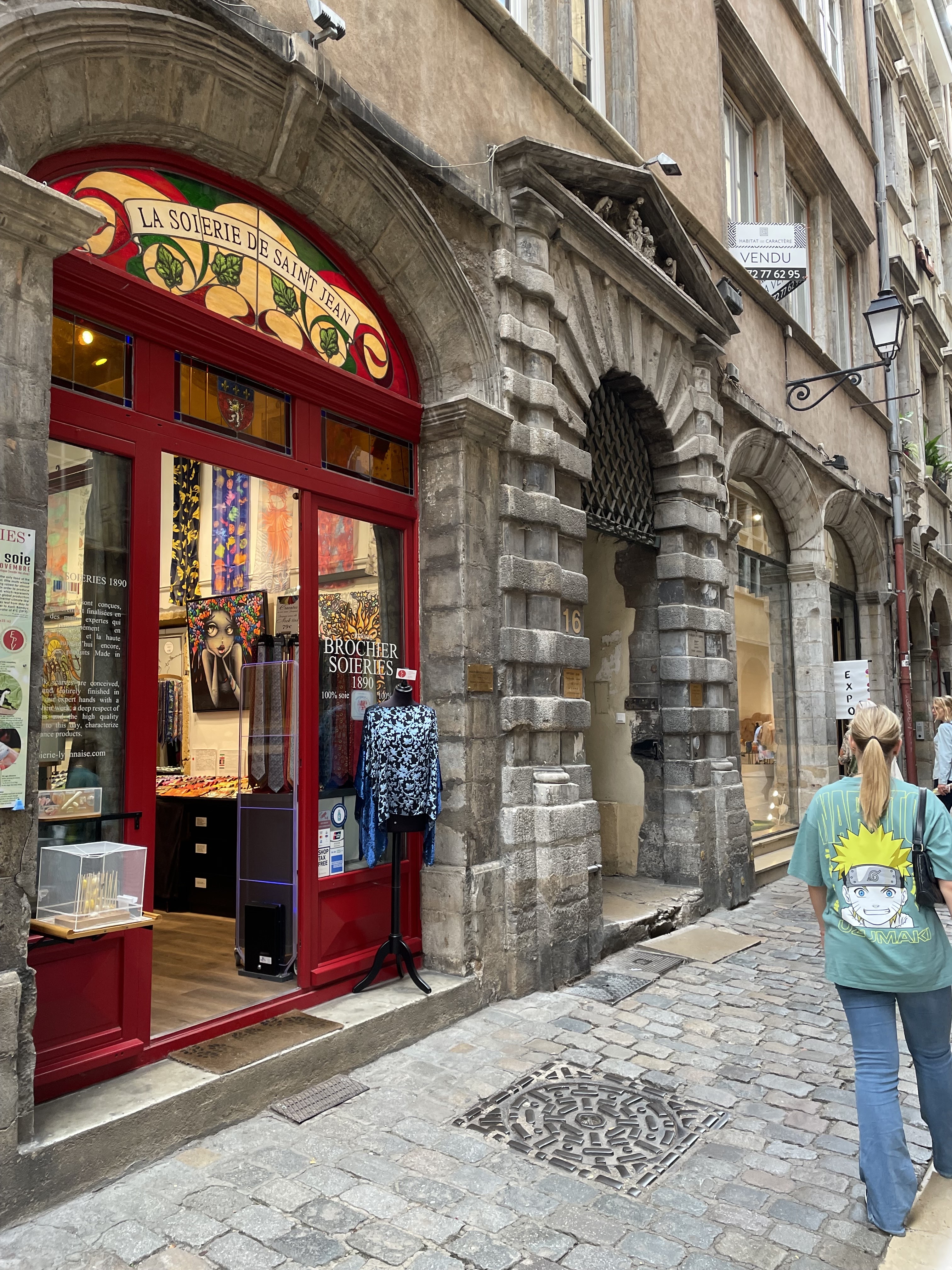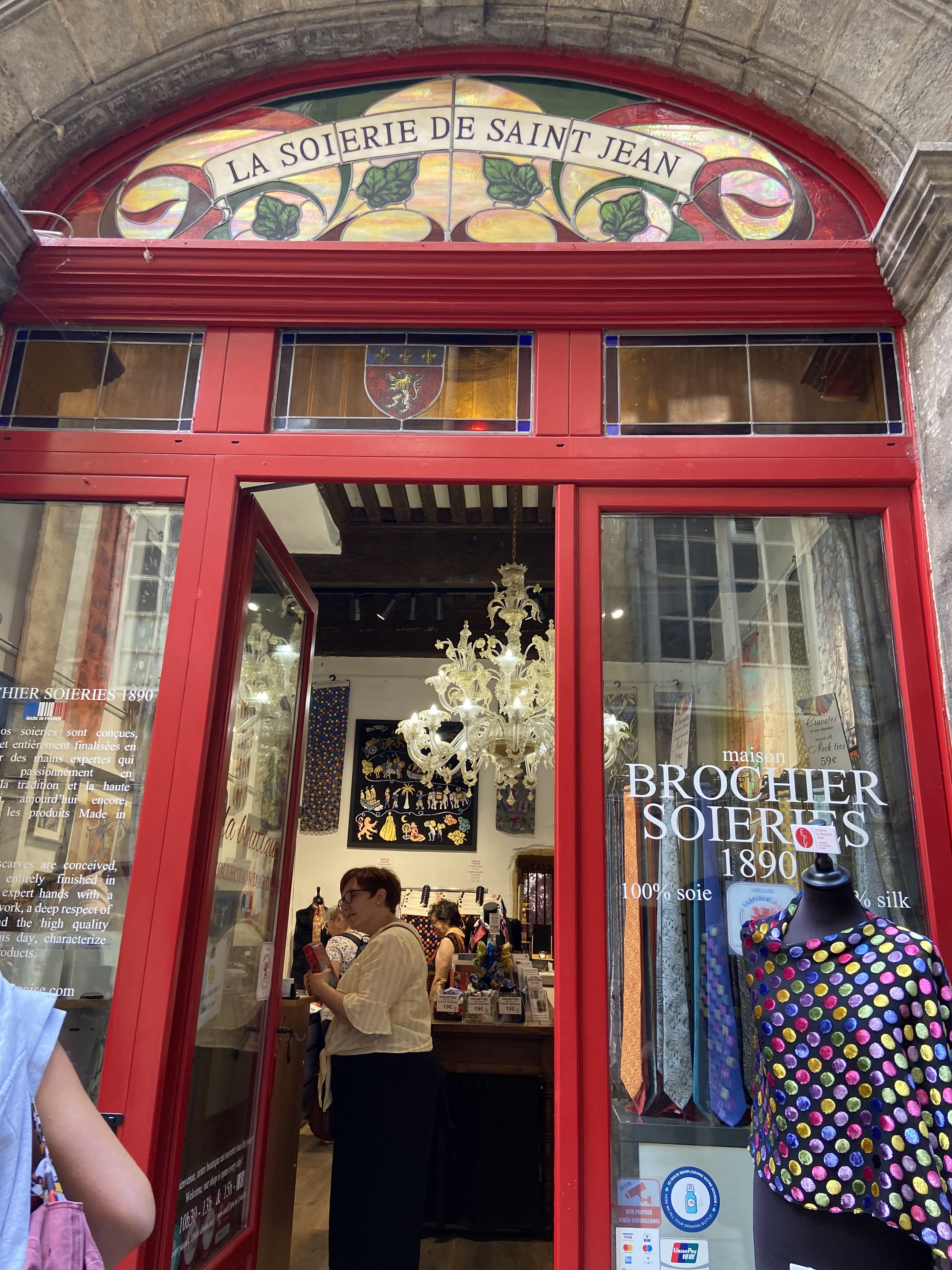 Formidable boutique de Brochier dans le vieux Lyon. Ça n'était pas vraiment la quartier de la soirie, mais ça le devient grâce au Signor Leonardi qui, s'il a eprdu son accent italien, en est bien un authentique qui vous parle de la soie comme si c'était lui qui l'avait fabriquée. P A S S I O N N A N T - E M O Z I O N A N T E ! ! ! !