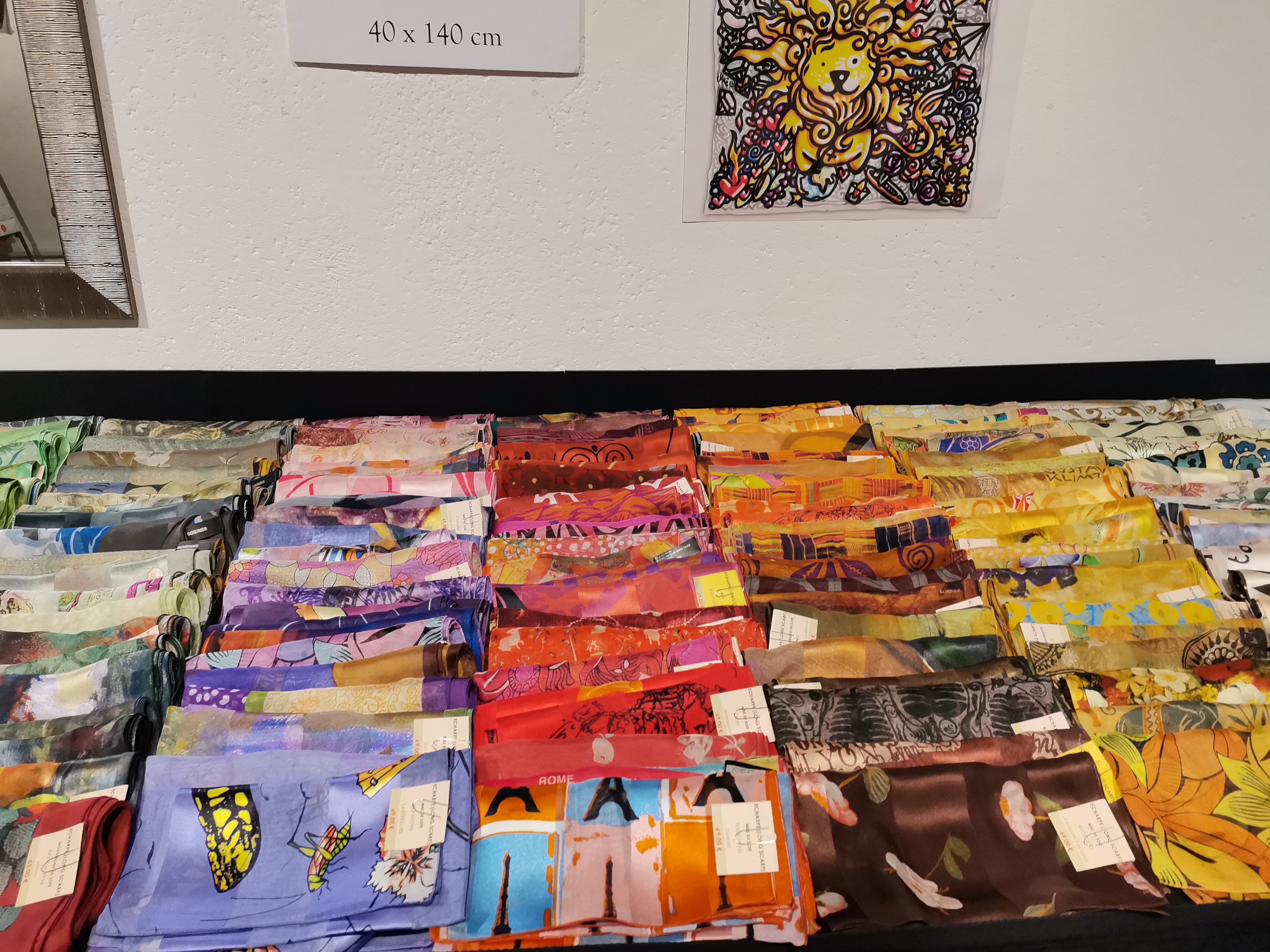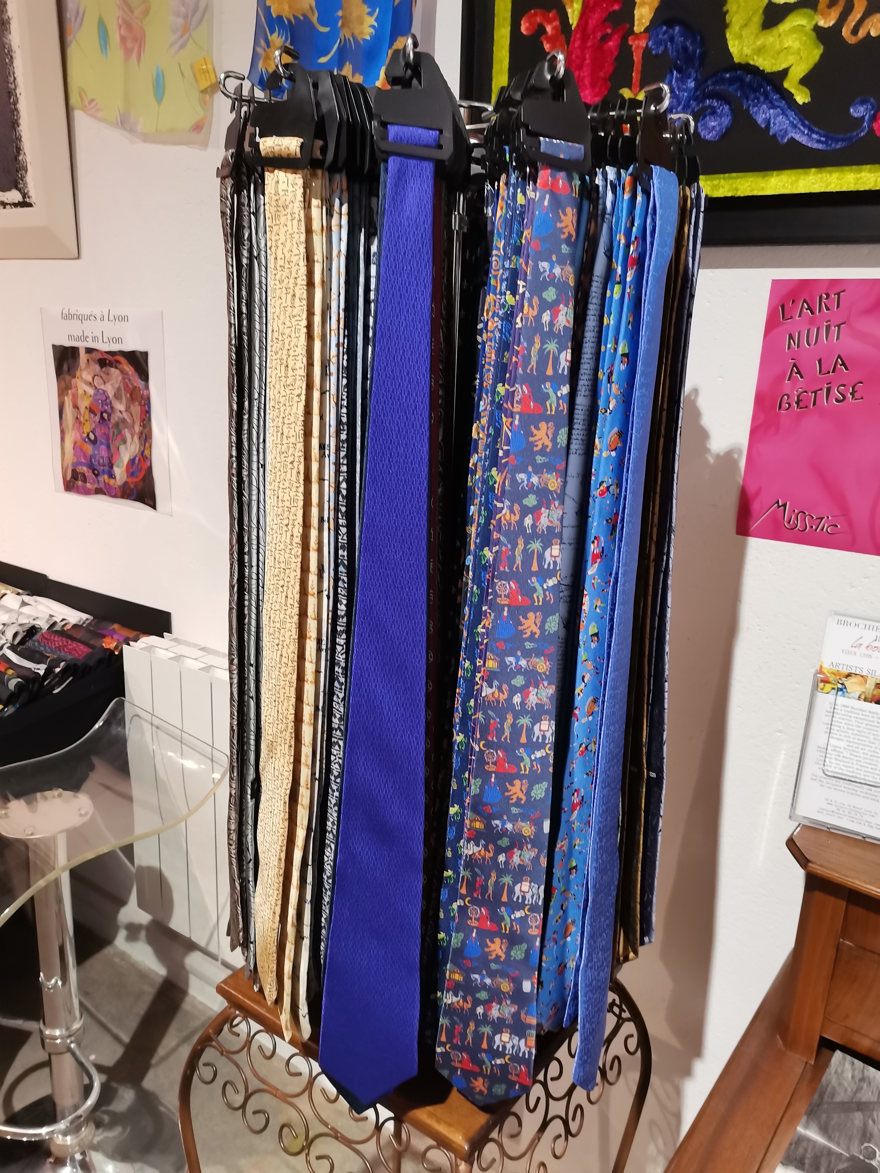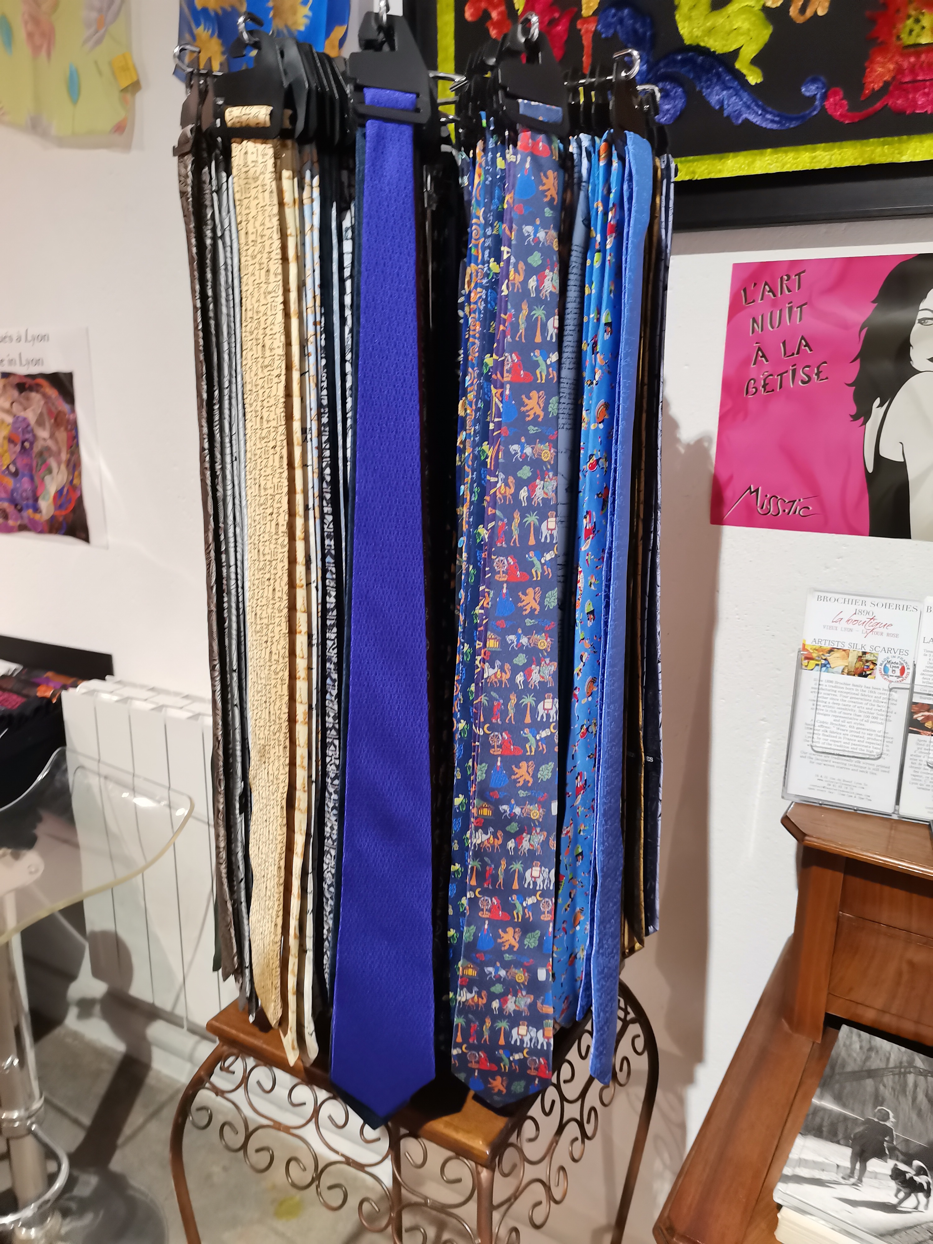 Choix immense de foulards de toutes les couleurs. Je recommande pour encourager la soierie Lyonnaises et pour vos cadeaux a prix raisonnables.