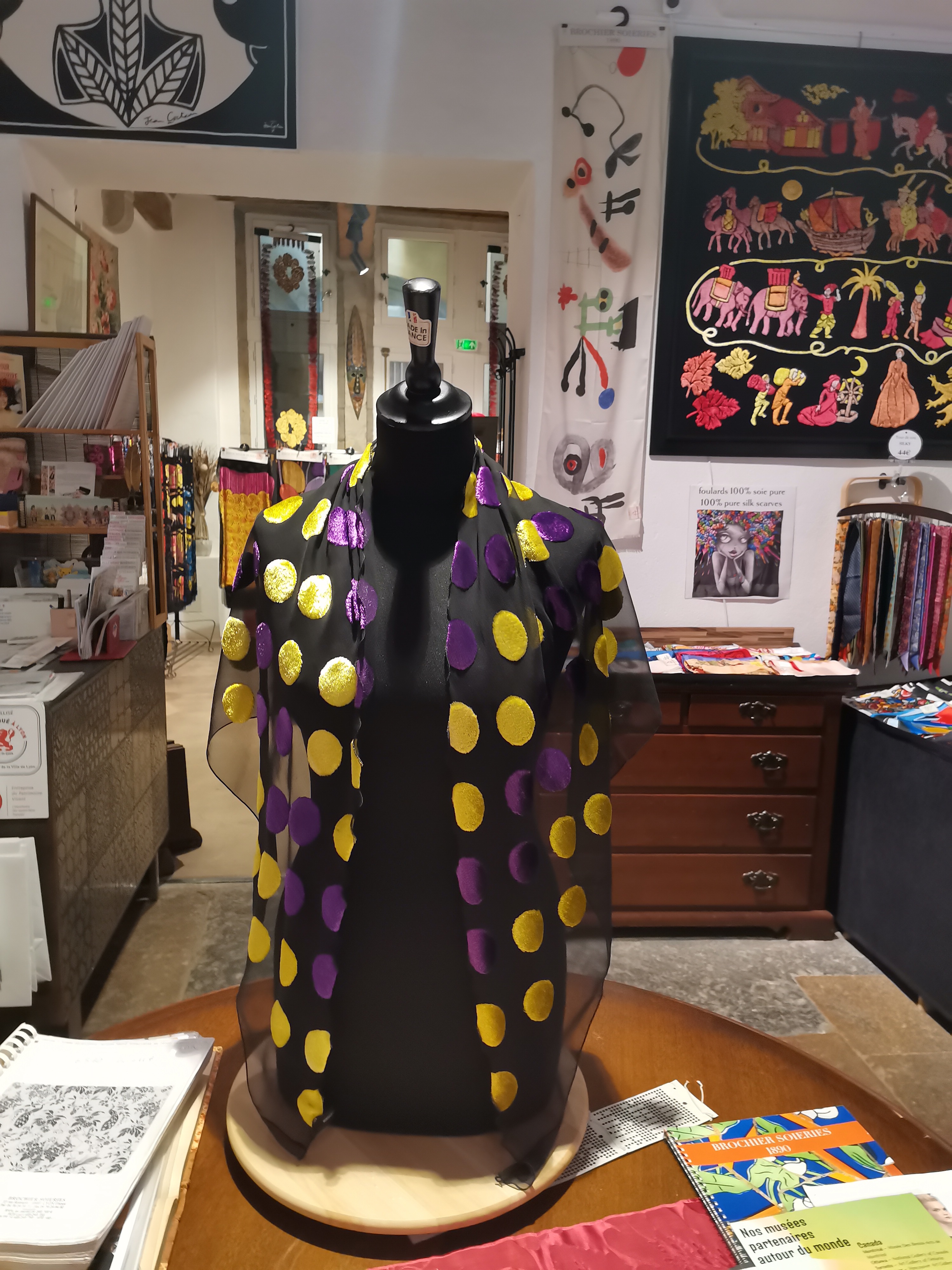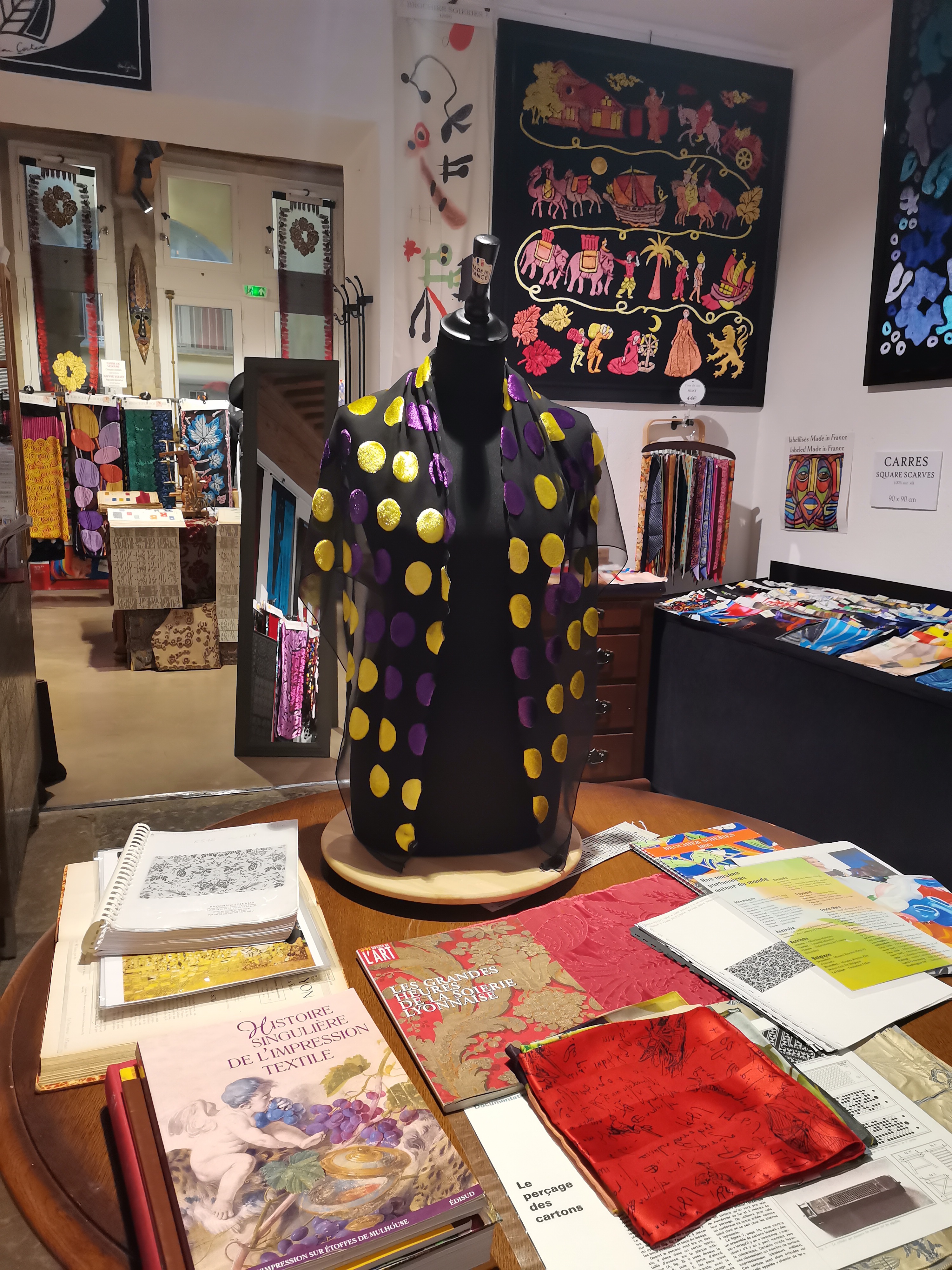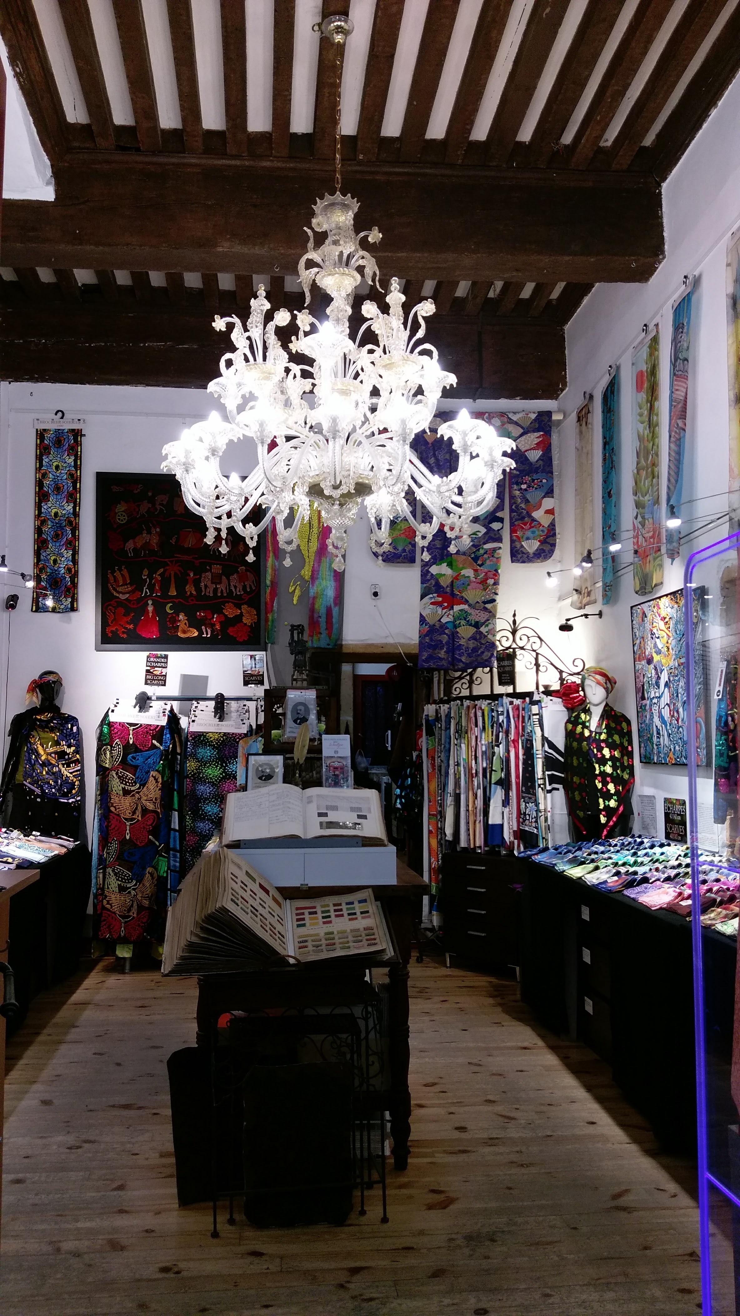 Petite boutique charmante où nous avons été très bien accueillis. Histoire de la soie de Lyon ( que je connaissais). Les foulards et étoles choisies sont magnifiques et merci pour la petite attention pour la petite.