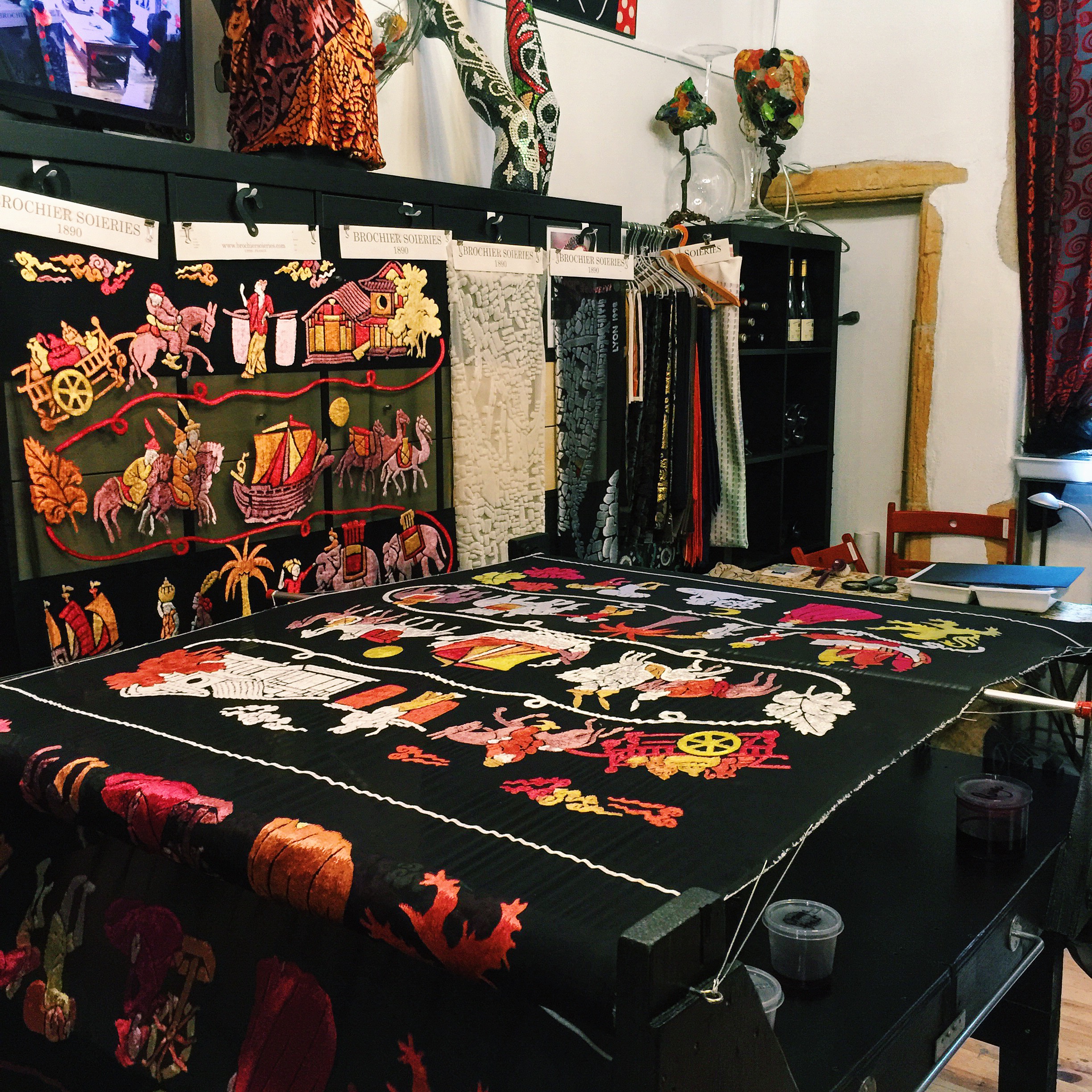 Boutique de soie avec une tradition qui montre comment est le processus de la soie. Lyon est une ville connue pour la soie, c'était une entreprise qui était pérenne à Lyon et il est intéressant d'avoir ce type d'entreprise aujourd'hui avec autant de tradition pour pouvoir apprécier comment les vers tissent. soie