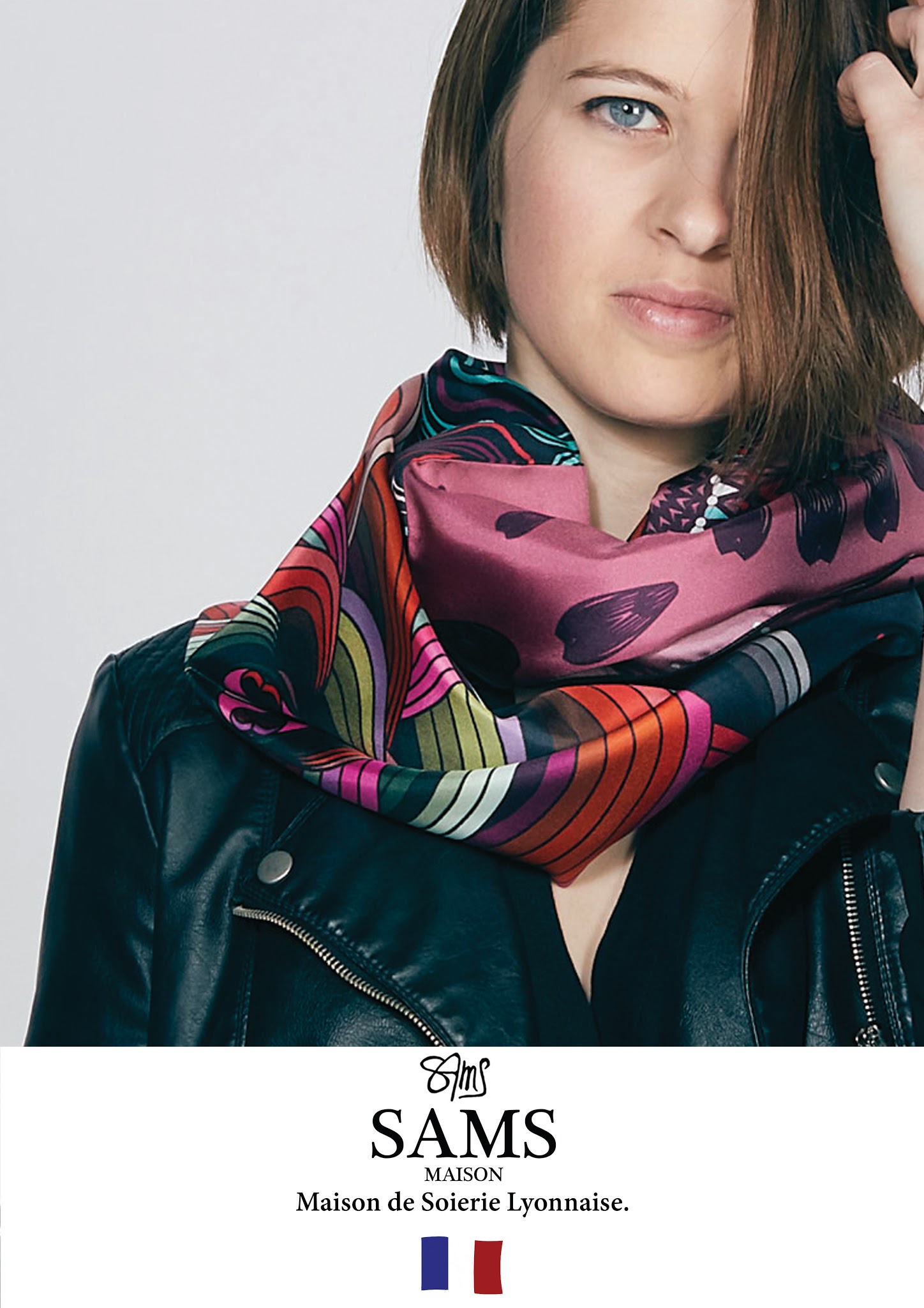 La Maison Sams c'est la haute qualité de la soierie Lyonnaise, très beaux imprimés aux couleurs lumineuses. J'ai découvert la marque au hasard d'une balade au marché des Créateurs à Lyon il y a 3 ans, des accessoires à offrir et à S'offrir... j'ai plusieurs pièces et j'en suis ravie, ce sont des produits élégants et indémodables. MADE IN FRANCE! Hâte de découvrir la prochaine collection! Je souhaite une belle continuation à Sarah ...